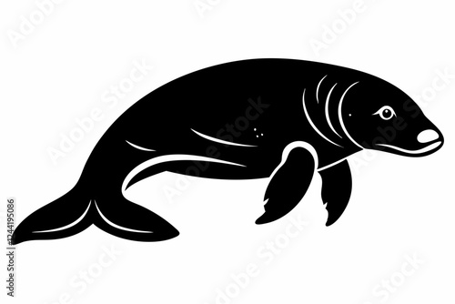 © pipp99, Fototapeta premium dugong silhouette line art vector illustration with a white background