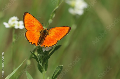 Obraz premium Dukaten-Feuerfalter auf einer Wiese Lycaena virgaurea