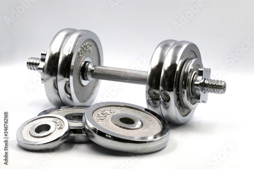© Touchi, Fototapeta premium dumbbell weights on white background