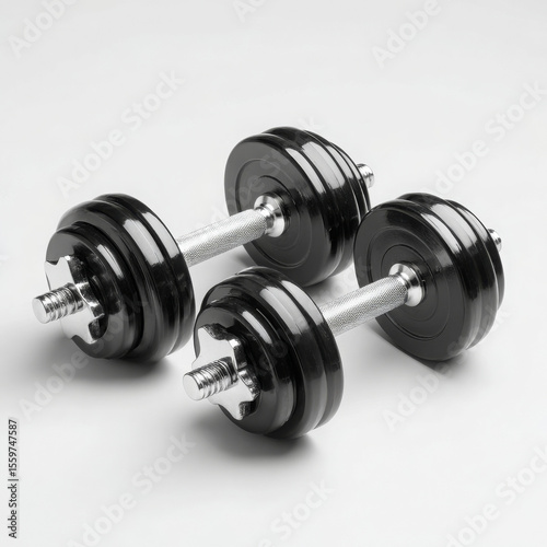 © Sukifli Dakheng, Naklejka premium Dumbbells gleam, ready to invigorate strength and boost fitness journey