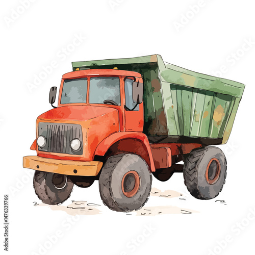 Obraz premium Dump Truck cute watercolors illustration isolated on white background
