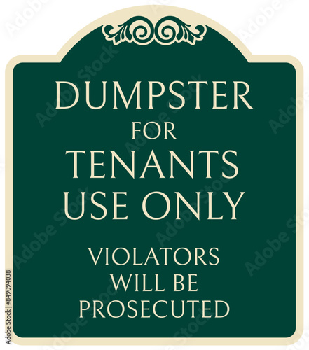 Obraz premium Dumpster sign dumpster for tenant use only. Violators will be prosecuted