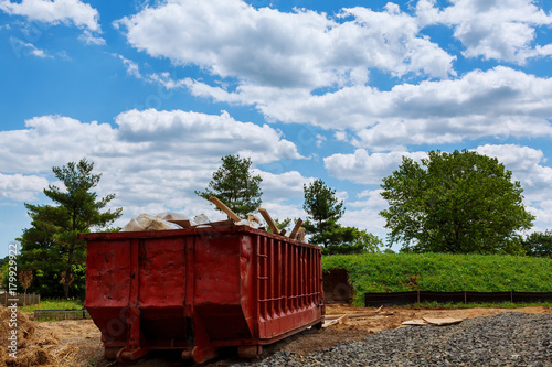 Fototapeta premium Dumpsters being full with garbage in a city.
