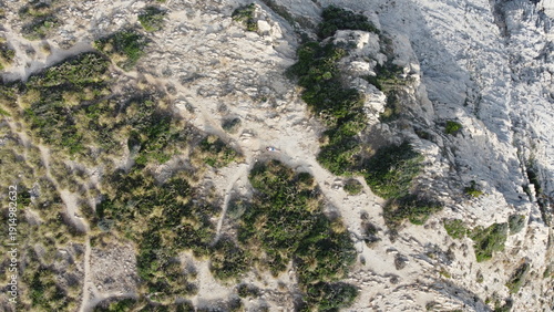 Obraz premium Dune Trails Overview. View From Above Of Winding Sandy Paths Crossing Dunes With Activity Indications