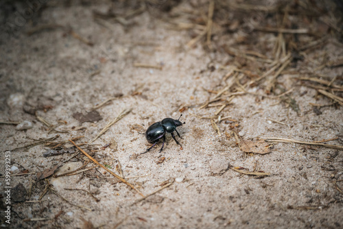 Fototapeta premium dung beetle crawling trough the sand
