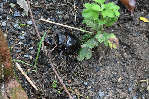 Fototapeta premium Dung beetles are beetles that eat feces. These can bury dung several times their mass in one night. Many dung beetles, known as rollers, roll dung into round balls, which are used as a food source.