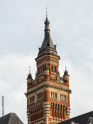 Fototapeta premium Dunkirk Town Hall. View on the belfry. Evening.