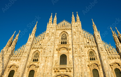 © jovannig, Fototapeta premium Duomo of Milan, facade exterior view - Italy