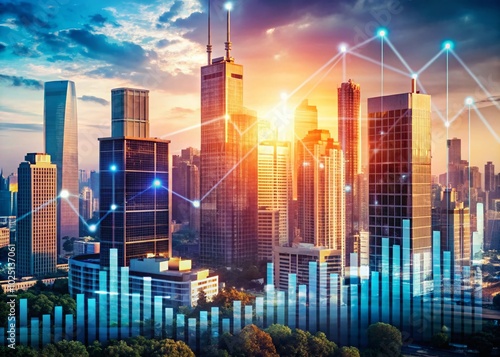 © Four888, Obraz premium Duotone Analysis Icon in Double Exposure Style for Modern Data Visualization