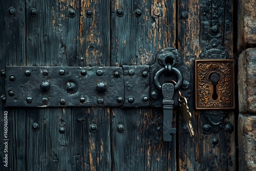 © IvyBridge, Fototapeta premium Durable locks on vintage wooden doors