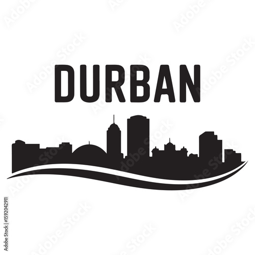 Fototapeta premium Durban skyline silhouette. Black Durban city. Vector black silhouette. with...