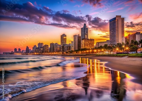 Obraz premium Durban Summer Nights: Beachfront Skyline Twilight Panorama