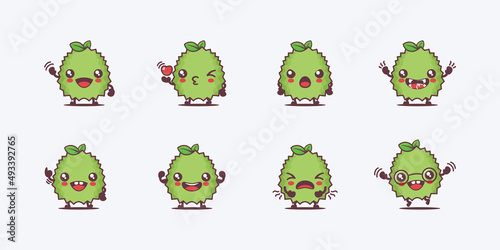 Obraz premium Durian cartoon. vector illustration of fruit. with different faces and...