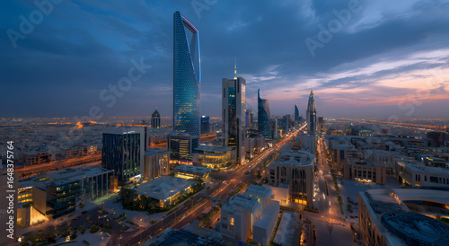 © Daniel, Fototapeta premium During the blue hour, the KAFD buildings in Riyadh, Saudi Arabia, stand out