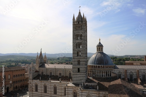 © ClaraNila, Naklejka premium Dusk at Cathedral Santa Maria Assunta in Siena, Tuscany Italy