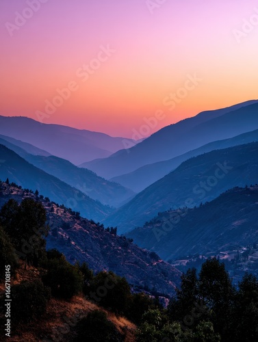 © BrandwayArt, Fototapeta premium Dusk mountain landscape with vibrant hues