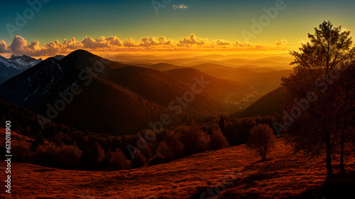 © Jakow, Naklejka premium Dusk Mountainview into the valley