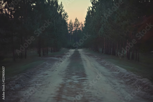 © share, Fototapeta premium Dusk Road Pines Forest Path Drive
