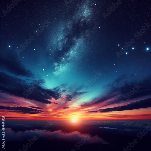 © Natasha, Fototapeta premium Dusk Sky A sky transitioning from light to darkness with the fir