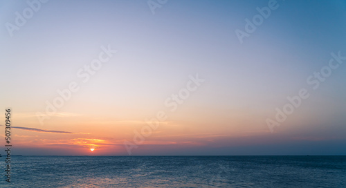 © Nature Peaceful , Obraz premium Dusk sky over sea in the evening with orange sunlight and sundown