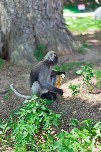 © Thanakharn, Obraz premium Dusky Langur monkey on ground