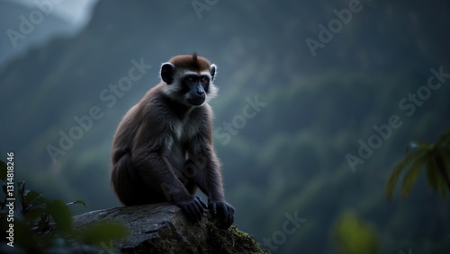 © AIArtistry, Obraz premium Dusky langur sitting on a rock.