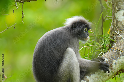 © Sanit, Obraz premium Dusky Langur (Trachypithecus obscurus) cute monkey on tree.