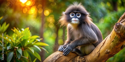 © Manatsavee, Fototapeta premium Dusky Leaf Monkey on Ancient Tree Branch, Prachuap Khiri Khan, Thailand