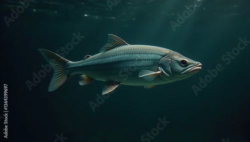 Fototapeta premium Dussumier's halfbeak swimming in dark water, its reflection visible below, fish, wildlife