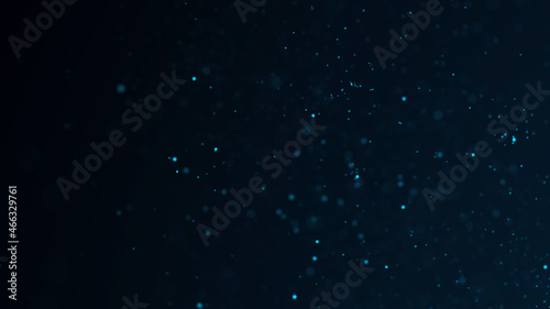 © Vitalii, Fototapeta premium Dust particle glow. Energy flow on a blue background. Abstract background of particles. 3D rendering.
