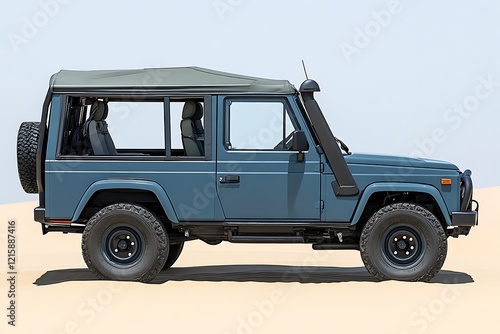 © masud, Obraz premium Dusty Blue Safari Land Cruiser: Side Profile in Desert Landscape