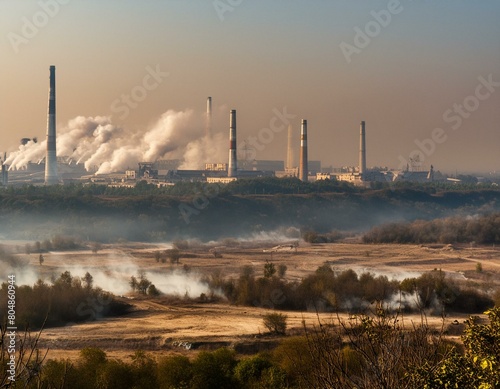 © Beste stock, Fototapeta premium Dusty city landscape pollutes the atmosphere