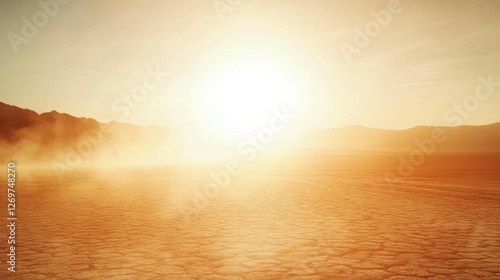 Naklejka premium Dusty Desert Landscape Under a Bright Sun