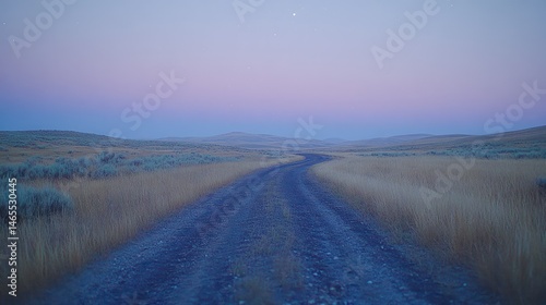 Fototapeta premium Dusty road stretches into a pale twilight landscape
