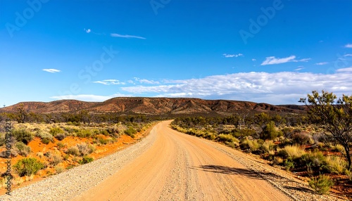 © Masteran, Fototapeta premium Dusty road stretching into a vast landscape under a vibrant sky