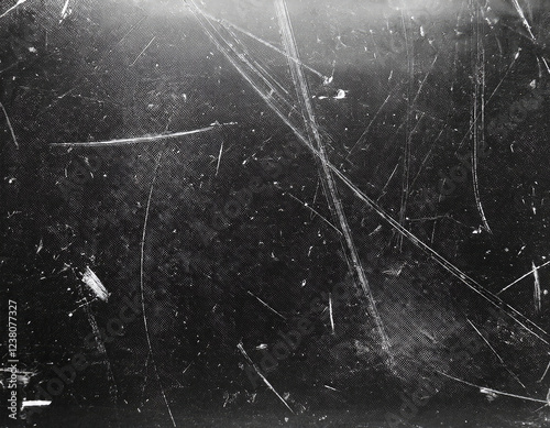© Jathurshan, Fototapeta premium Dusty scratched and scanned old film texture with scratches, scuffs; retro toning photo effects added for overlay