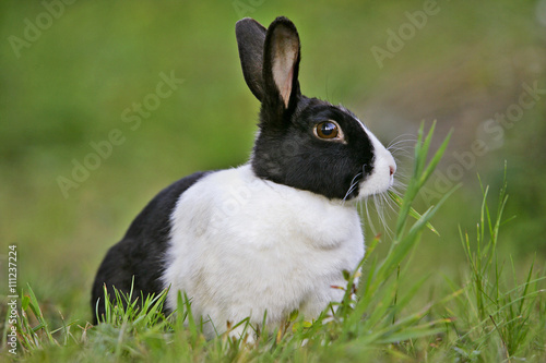 © rima15, Obraz premium Dutch Rabbit domestic, sitting feeding on grass