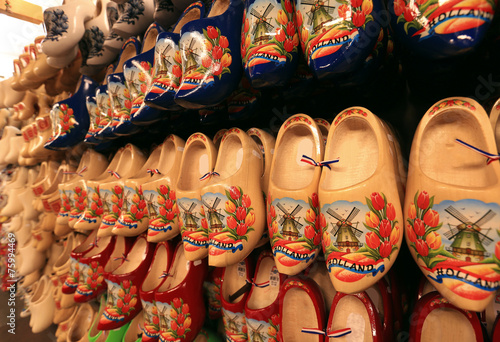 © Zarya Maxim, Obraz premium Dutch Souvenirs, a bunch of colored wooden shoes
