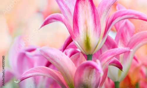 Fototapeta premium Dutch Tulip flowers in selective focus, close up.