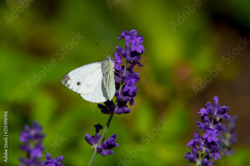 © Augustas Cetkauskas, Naklejka premium Duży biały motyl na fioletowym kwiecie lewandry