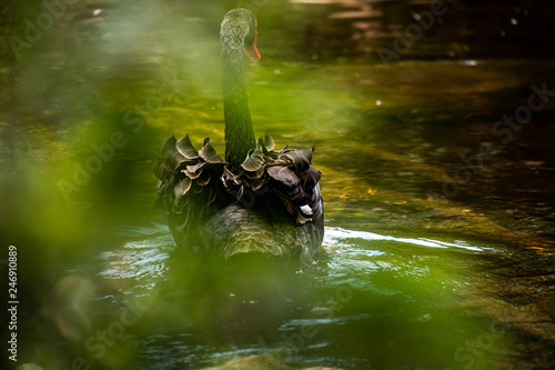 Naklejka premium Duży czarny łabędź z czerwonym dziobem