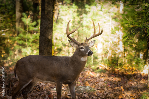 © Tony Campbell, Obraz premium Duży jeleń bielik w lesie