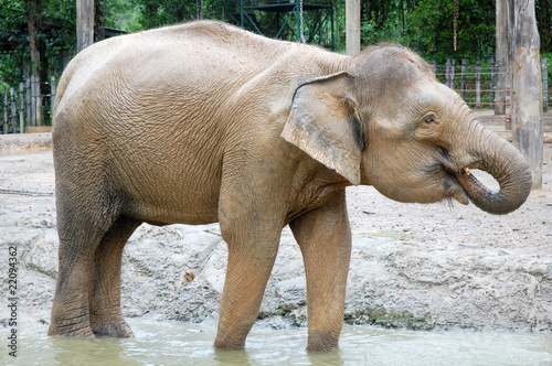 © HONG SIEW MEE, Fototapeta premium duży słoń jedzący w stawie