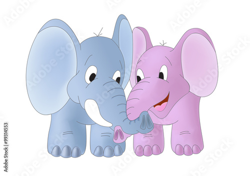 © redpandadesign88, Naklejka premium Dwa słonie z poskręcanymi trąbami