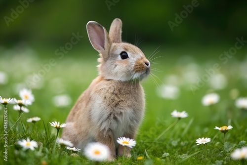 © KantorArtificial, Fototapeta premium Dwarf rabbit on the grass with small flowers
