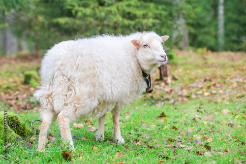 © Farinoza, Naklejka premium Dwarf white sheep in forest