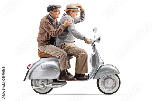 © Ljupco Smokovski, Obraz premium Dwóch starszych mężczyzn, jazda szybko skuterem vintage