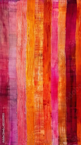 Fototapeta premium Dyed eclectic texture showcasing irregular vertical stripes in shades of orange and pink, background