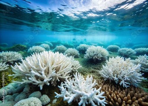 Fototapeta premium Dying Coral Reef, Ocean Acidification, Plankton Decline, Marine Food Web Disruption, Climate Change Impact