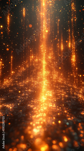 Naklejka premium Dynamic abstract background featuring glowing orange particles and light...